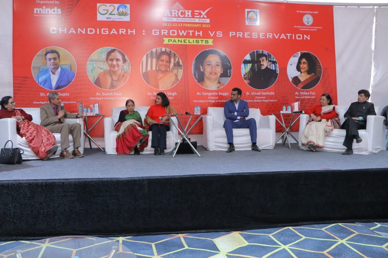 Honoured to be a panellist at “Chandigarh: Growth vs Preservation”, held in February 2023, by Archex alongside Sh. Arun Gupta (Chandigarh Municipal Corporation), Ar. Namita Singh (Practising Architect), Er. Vinod Vashisht (CFORWO), Ar. SangeetaBagga (Principal, CCA), Ar. Sumit Kaur (Chandigarh Heritage Committee), and other distinguished professionals.