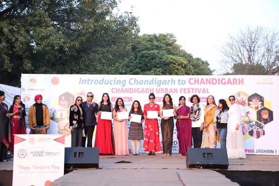 Presented prizes to winners across multiple categories at the Chandigarh Urban Festival 2020, held at Sector 17 Plaza, Chandigarh, on 14 February 2020, in the presence of Mrs. Lippi Parida, Renee Singh, Dr. Sanjay Kalra, and other distinguished guests.