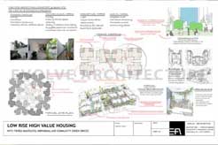 Low Rise High Value Housing is developed as a series of housing prototypes for the urban poor, conceived in alignment with the Housing for All initiative and Sustainable Development Goal 11 – Sustainable Cities and Communities. The project demonstrates how dignified, climate-responsive living environments can be achieved within limited resources while maintaining social equity and spatial quality. A residential density of approximately 250 persons is achieved on a 3.28-acre site through a carefully planned ground-plus-four low-rise configuration, balancing efficiency with human scale.