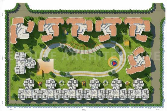 This residential development is envisioned as a contemporary mid-rise housing community organized around open green spaces and a well-structured circulation network. Multiple apartment blocks are positioned along the site edges, creating a defined urban frontage while opening the interior toward a large landscaped central park. The planning encourages natural ventilation, daylight penetration, and visual connectivity between buildings and outdoor spaces, enhancing the overall residential environment.