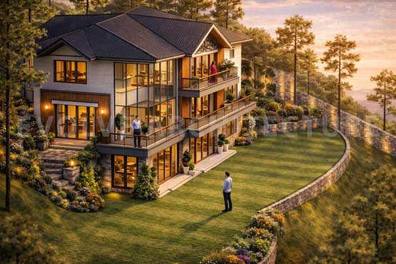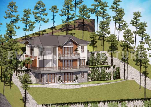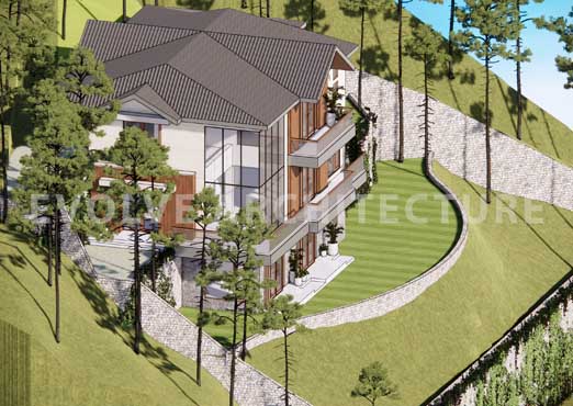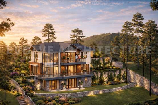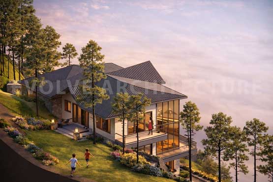 Perched gently on the hillside, the luxury villa is envisioned as a blissful second home retreat that celebrates the serenity of the mountains. Designed with extreme care and sensitivity to the local ecosystem, the villa is carefully planned to preserve existing trees and minimize disturbance to the natural terrain.