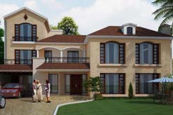 This residence draws from Mediterranean revival and neo-colonial vocabulary, expressed through textured stucco walls, warm earth tones, and a low pitched terracotta tiled roofscape. The composition balances asymmetry with classical order, using arched windows, recessed balconies, and slender columns to soften the mass. Timber framed glazing and wrought iron railings add craft detail against the broad plastered surfaces. A sheltered porch and extended eaves create transitional thresholds between indoors and landscape. The house emphasizes horizontality through layered rooflines, yet punctuates the skyline with a modest gable and dormer, giving it a suburban villa character rooted in comfort, familiarity, and gentle grandeur.