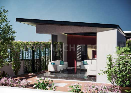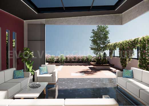 Conceived as an elevated executive retreat, this project transforms the roof of an existing three-storey office building into a sophisticated terrace lounge. The brief required a multifunctional space for important meetings as well as informal interactions that was achieved through a careful balance of enclosure and openness. Structural limitations of the rooftop were addressed through lightweight prefabricated construction and precise detailing to ensure minimal load and seamless integration with the existing structure.